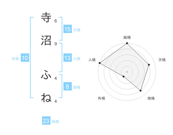寺沼 ふねさんを姓名の画数から五運を鑑定