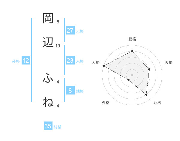岡辺 ふねさんの総格は35画の4点!