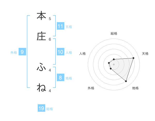 本庄 ふねさんを姓名の画数から五運を鑑定