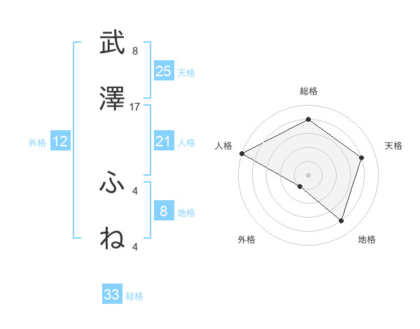 武澤 ふねさんの総格は33画の4点!