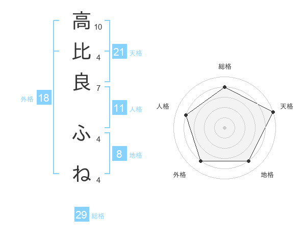 高比良 ふねさんの総格は29画の4点!