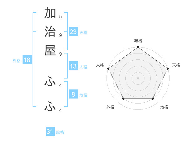 加治屋 ふふさんを姓名の画数から五運を鑑定