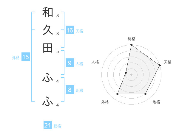 和久田 ふふさんを姓名の画数から五運を鑑定
