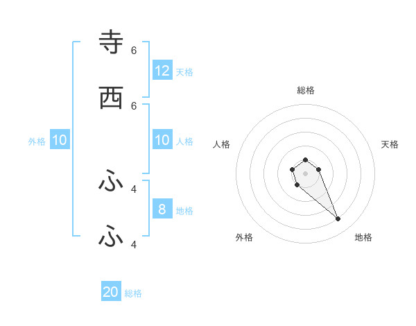 寺西 ふふさんの天格は12画の1点!