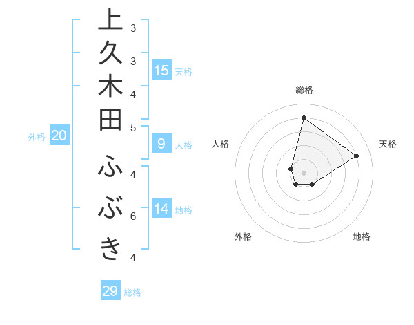 上久木田 ふぶきさんを姓名の画数から五運を鑑定