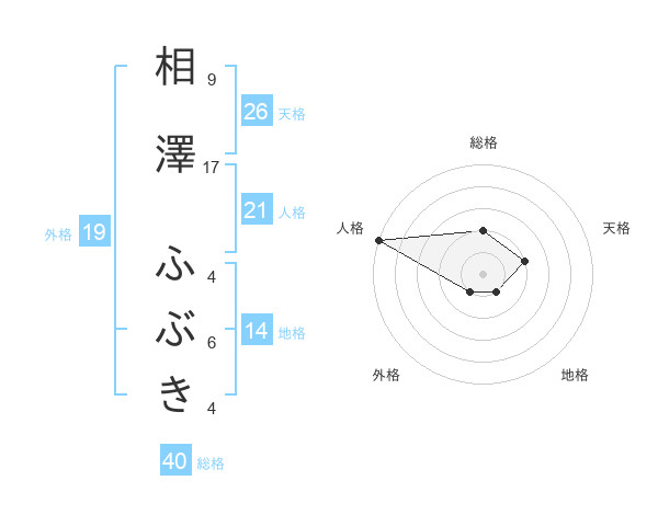 相澤 ふぶきさんを姓名の画数から五運を鑑定