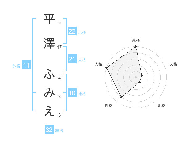 平澤 ふみえさんの総格は32画の5点!