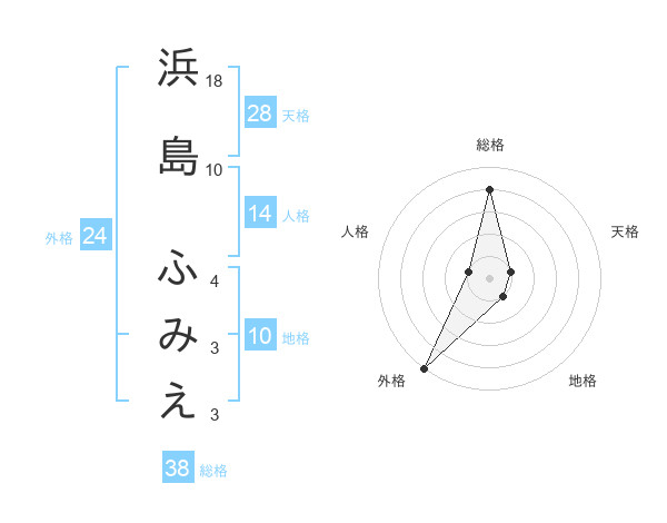浜島 ふみえさんを姓名の画数から五運を鑑定