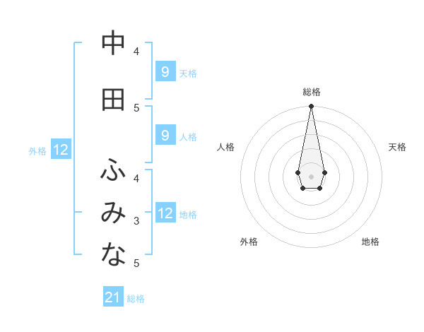 中田 ふみなさんを姓名の画数から五運を鑑定