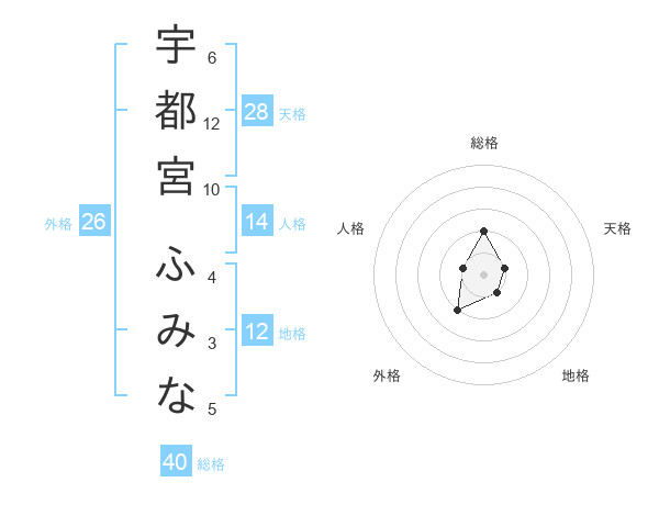 宇都宮 ふみなさんの総格は40画の2点!