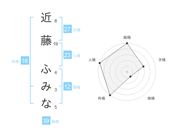 近藤 ふみなさんを姓名の画数から五運を鑑定
