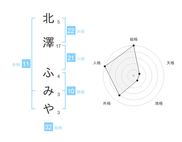 北澤 ふみやさんを姓名の画数から五運を鑑定