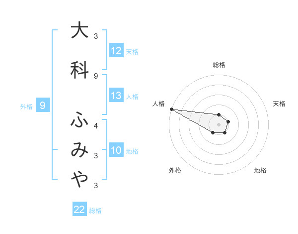 大科 ふみやさんを姓名の画数から五運を鑑定
