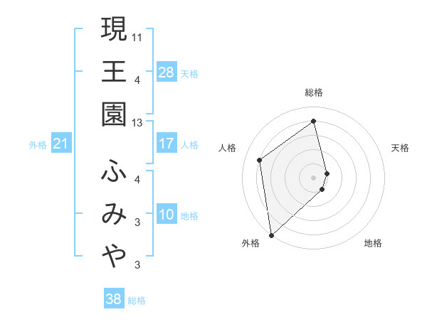 現王園 ふみやさんを姓名の画数から五運を鑑定