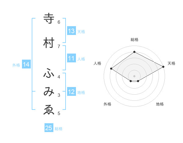 寺村 ふみゑさんを姓名の画数から五運を鑑定
