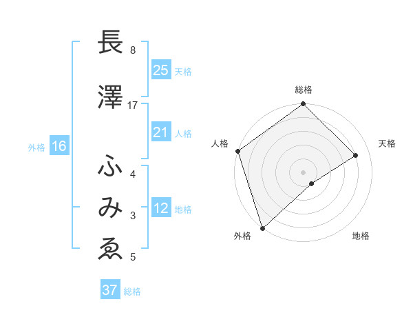 長澤 ふみゑさんの総格は37画の5点!