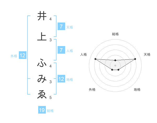 井上 ふみゑさんの総格は19画の1点