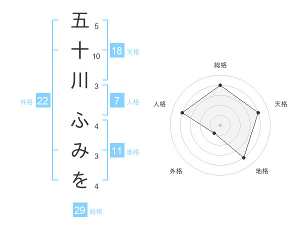 五十川 ふみをさんを姓名の画数から五運を鑑定