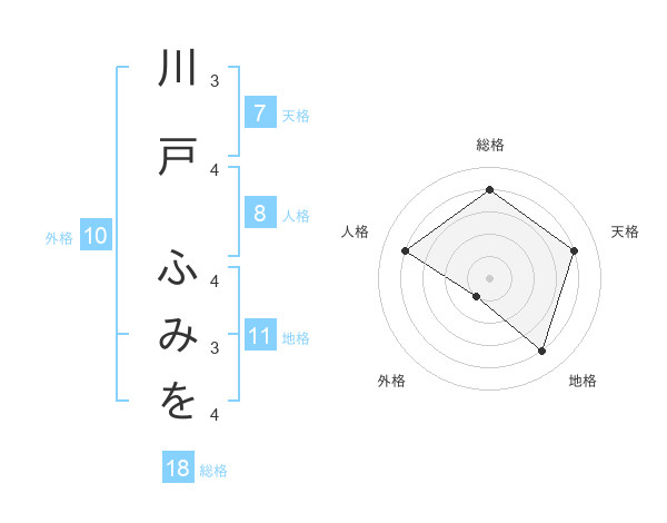 川戸 ふみをさんを姓名の画数から五運を鑑定