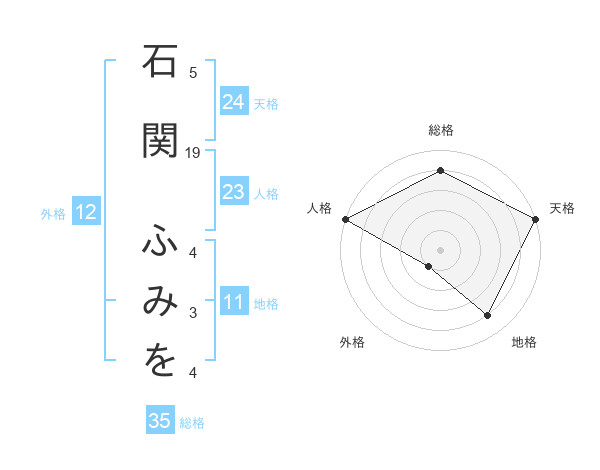 石関 ふみをさんの天格は24画の5点!