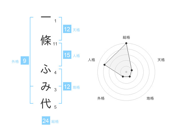 一條 ふみ代さんを姓名の画数から五運を鑑定