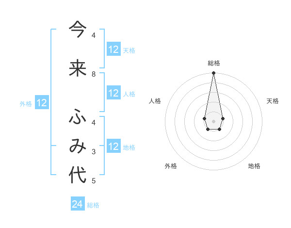 今来 ふみ代さんの総格は24画の5点!