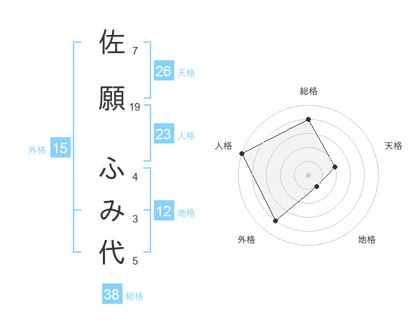佐願 ふみ代さんの総格は38画の4点!