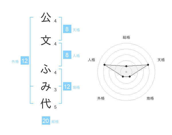 公文 ふみ代さんを姓名の画数から五運を鑑定