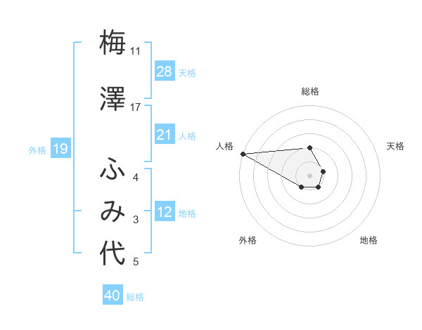 梅澤 ふみ代さんの天格は28画の1点!