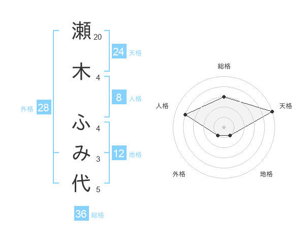 瀬木 ふみ代さんの天格は24画の5点!