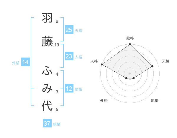羽藤 ふみ代さんを姓名の画数から五運を鑑定