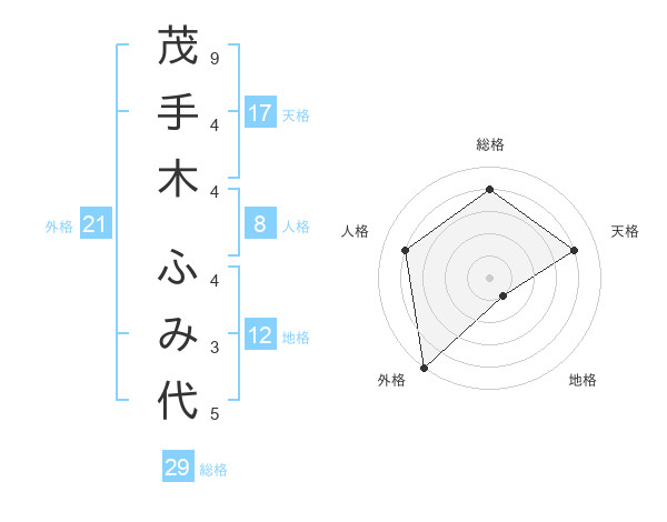 茂手木 ふみ代さんを姓名の画数から五運を鑑定