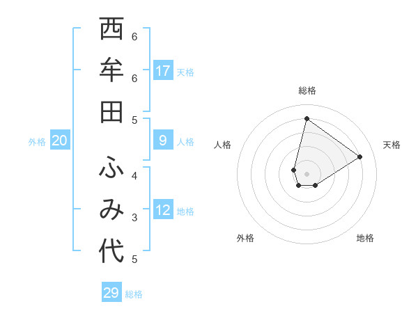 西牟田 ふみ代さんを姓名の画数から五運を鑑定