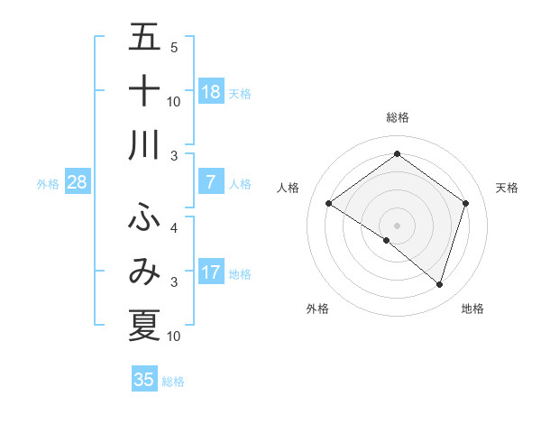 五十川 ふみ夏さんの総格は35画の4点!