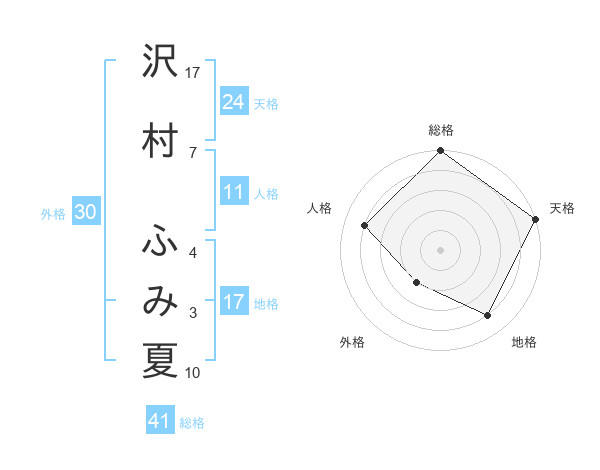 沢村 ふみ夏さんを姓名の画数から五運を鑑定