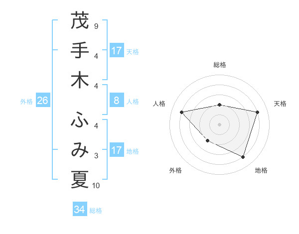 茂手木 ふみ夏さんを姓名の画数から五運を鑑定