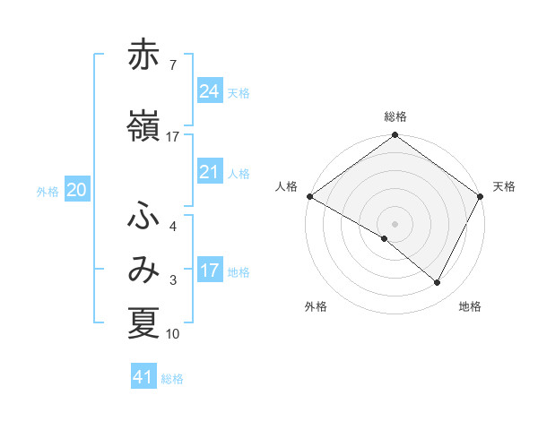 赤嶺 ふみ夏さんの総格は41画の5点!