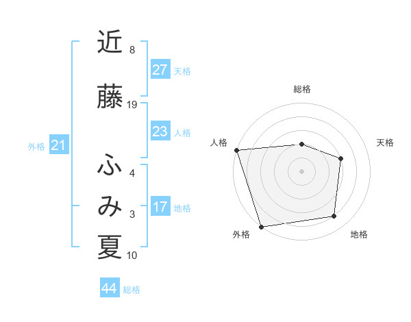 近藤 ふみ夏さんを姓名の画数から五運を鑑定