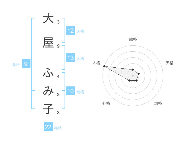 大屋 ふみ子さんの総格は22画の1点