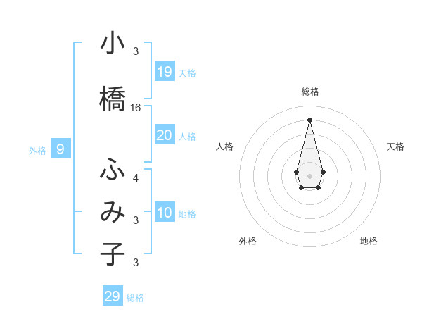 小橋 ふみ子さんを姓名の画数から五運を鑑定