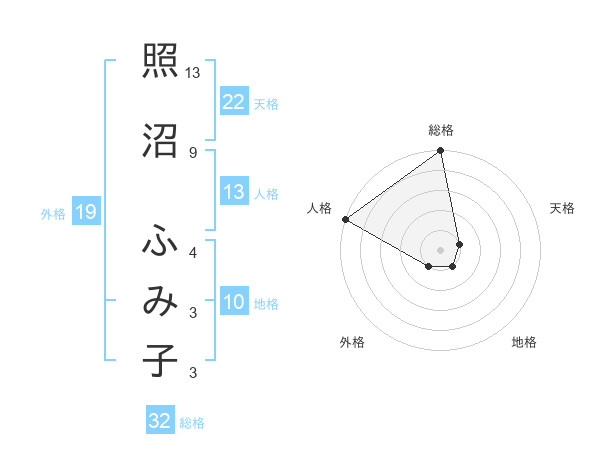 照沼 ふみ子さんの総格は32画の5点!