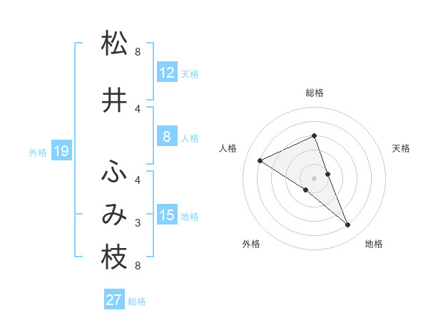 松井 ふみ枝さんの総格は27画の3点!