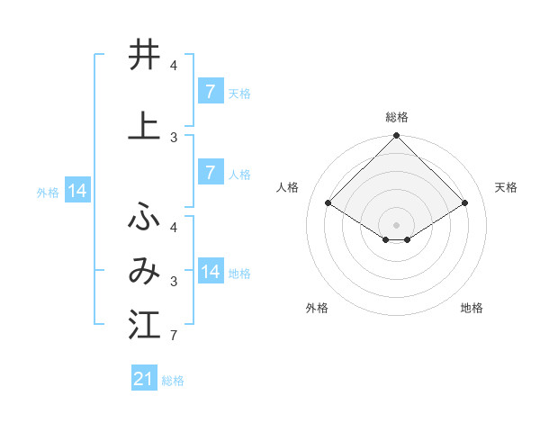 井上 ふみ江さんを姓名の画数から五運を鑑定