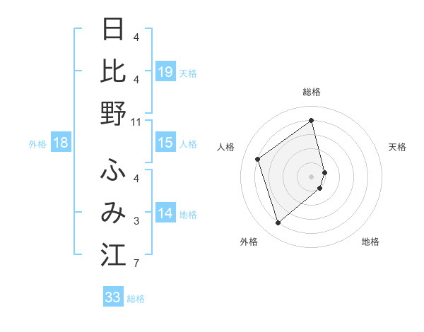 日比野 ふみ江さんを姓名の画数から五運を鑑定