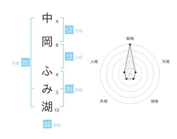 中岡 ふみ湖さんを姓名の画数から五運を鑑定