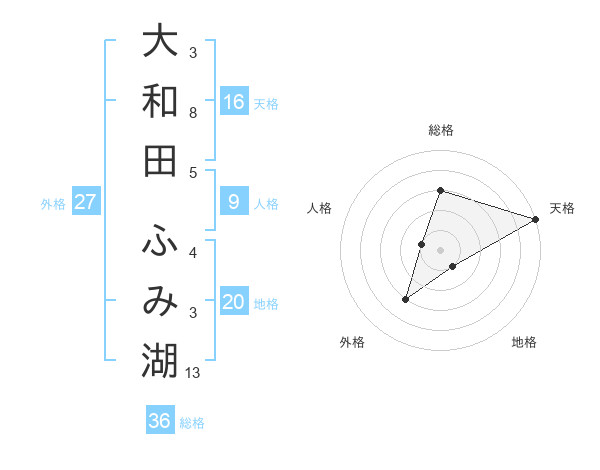 大和田 ふみ湖さんを姓名の画数から五運を鑑定