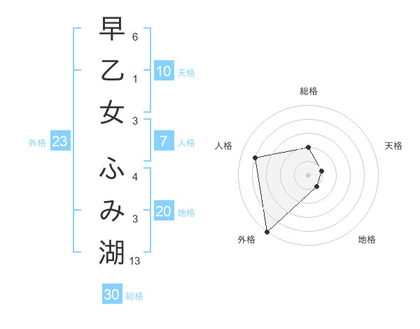 早乙女 ふみ湖さんの外格は23画の5点!