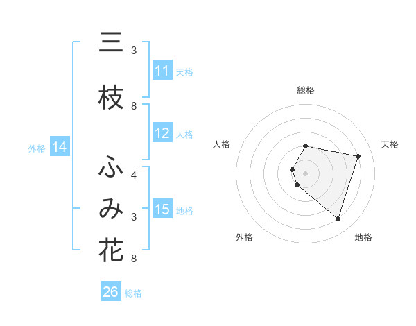 三枝 ふみ花さんを姓名の画数から五運を鑑定
