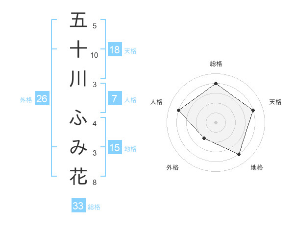 五十川 ふみ花さんの天格は18画の4点!