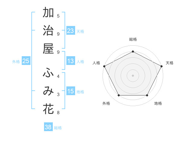 加治屋 ふみ花さんを姓名の画数から五運を鑑定
